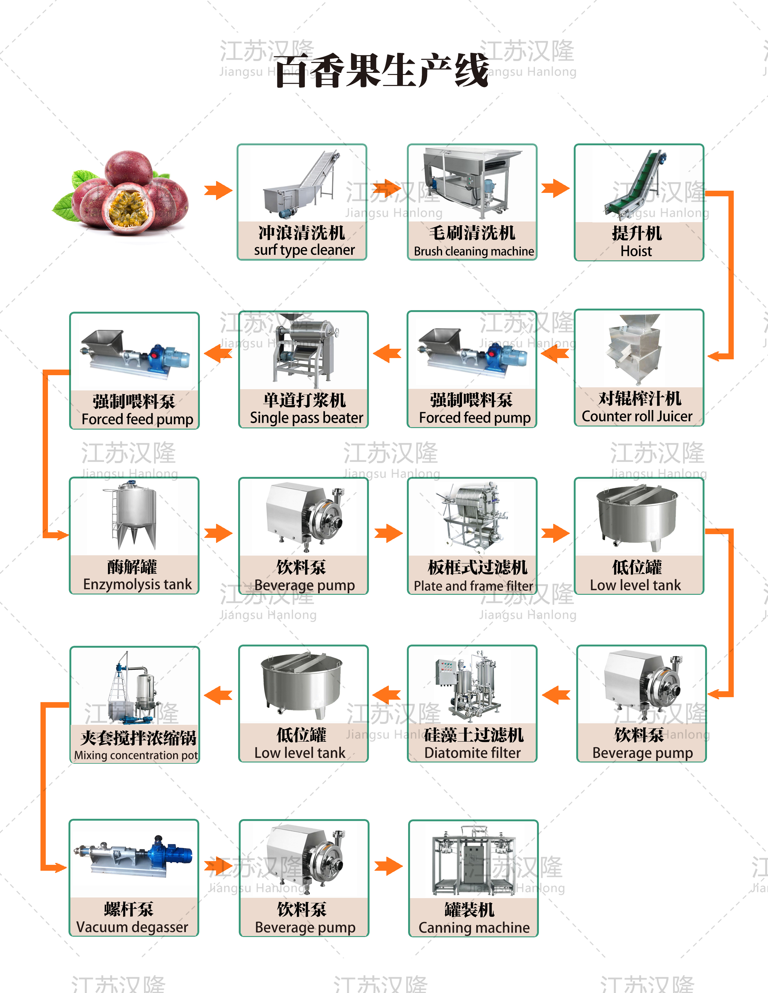 1、水果接受: 將百香果鮮果倒進溜槽中,在自吸泵循環水作用下流動到提升機刮板上。