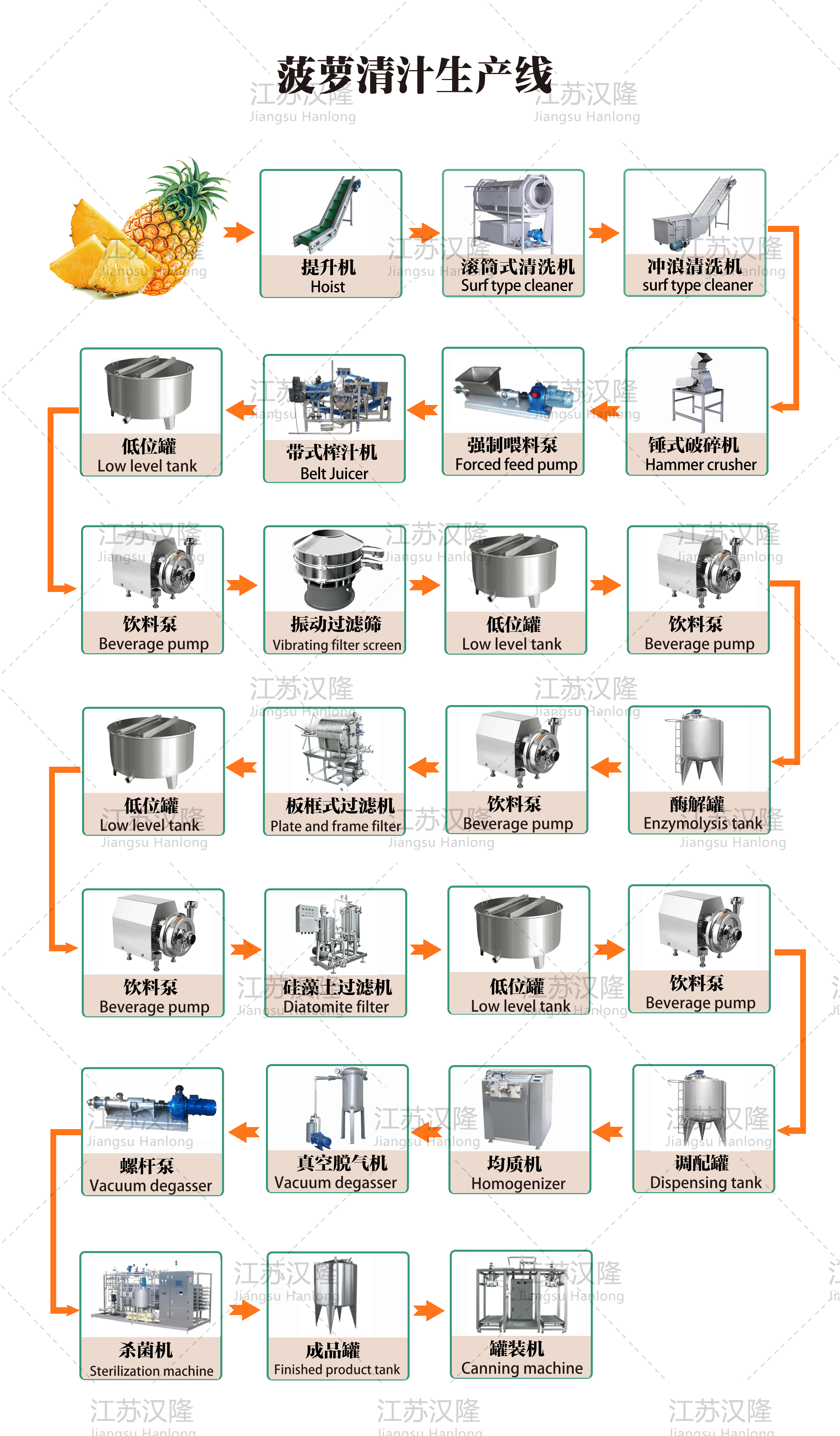 4.榨汁:把去皮的菠蘿切成塊,送入螺旋羞羞软件下载榨汁,把第一次榨汁後的果渣,加少量清水攪拌均勻後,再重榨一次,以提高出汁率。過濾壓榨出來的新鮮果汁中含有大量的粗纖維和其它雜質,先經粗濾後精濾。精濾設備用濾孔大小約為:0.5mm的刮板過濾機,目的是濾出粗纖維和其它雜質。精濾設備網為120目的離心過濾機,不僅要除去全部懸浮物,而且還要除去易產生沉澱的膠粒。
