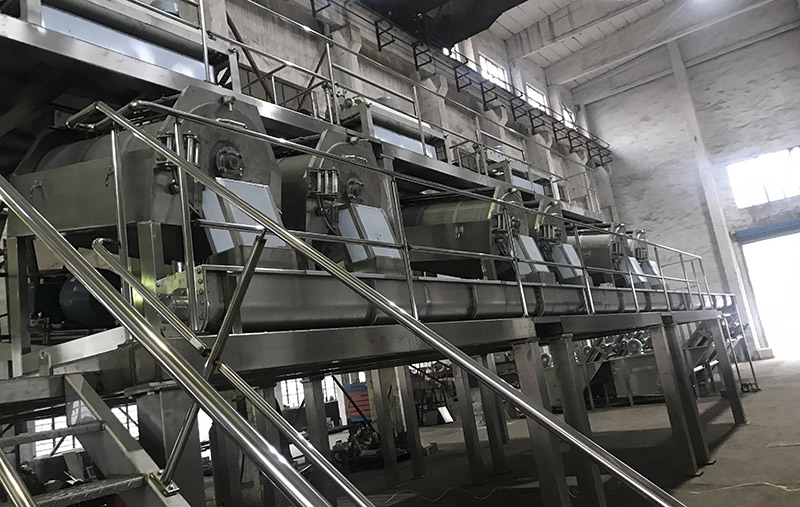 4.預煮:進料螺杆泵將經過清洗挑揀的紅棗推送入預煮器,通過蒸汽直接加熱,將紅棗的溫度從常溫加熱到80-85℃,使紅棗充分提取浸泡。以便下一道工序的進行。