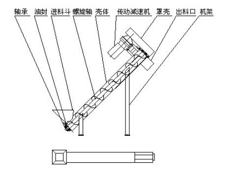 螺旋輸送機、螺旋提升機主要由進料鬥、螺旋軸、傳動減速機、出料鬥、殼體等部件組成。工作時,傳動減速機鏈輪帶動螺旋軸旋轉,物料進入殼體後,在螺旋軸的推力作用下向出料鬥移動,達到輸送或提升的目的。