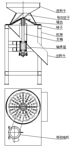該機是利用帶鋸齒轉子的離心力將椰肉研磨成細小顆粒,該機設計先進,結構簡單,適用椰肉等果蔬的細化。